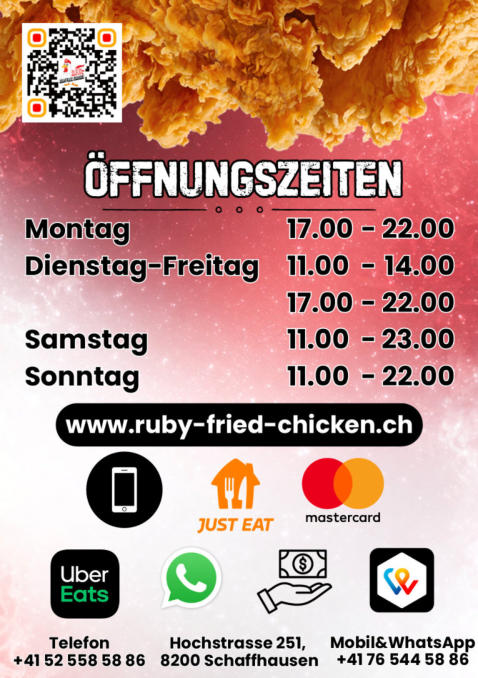 Tel. 052 558 58 86 www.Ruby-Fried-Chicken.ch