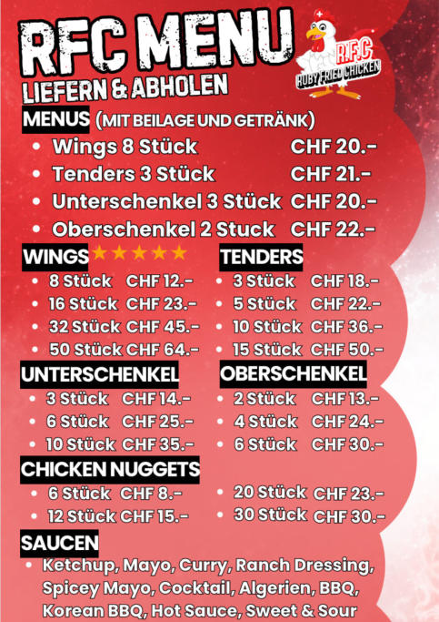 Ruby Fried Chicken Wings - Tenders - Unterschenkel Oberschenkel - Wraps Chicken Nuggets - Cordon Bleu Schweizer Poulet Lieferservice